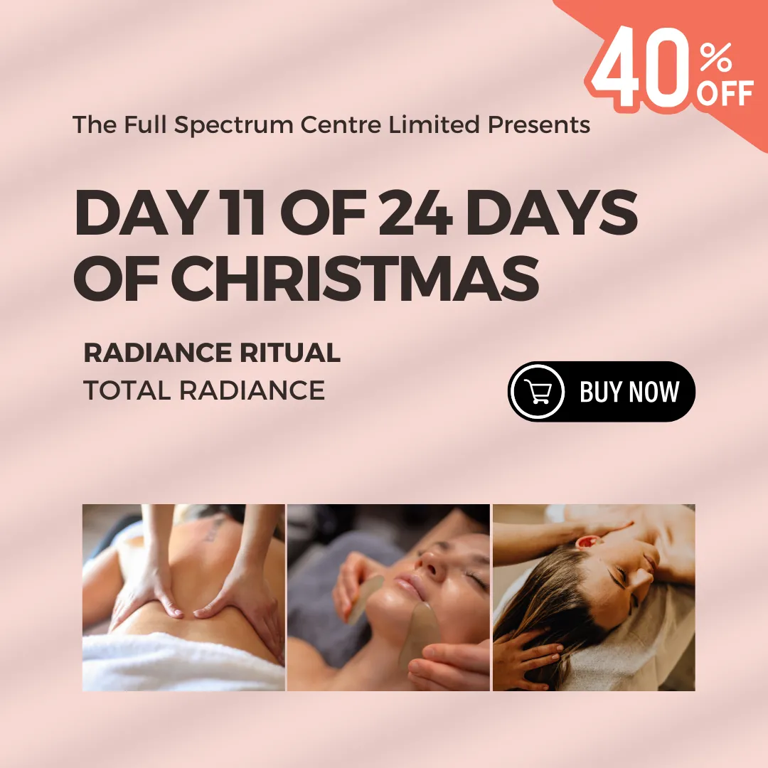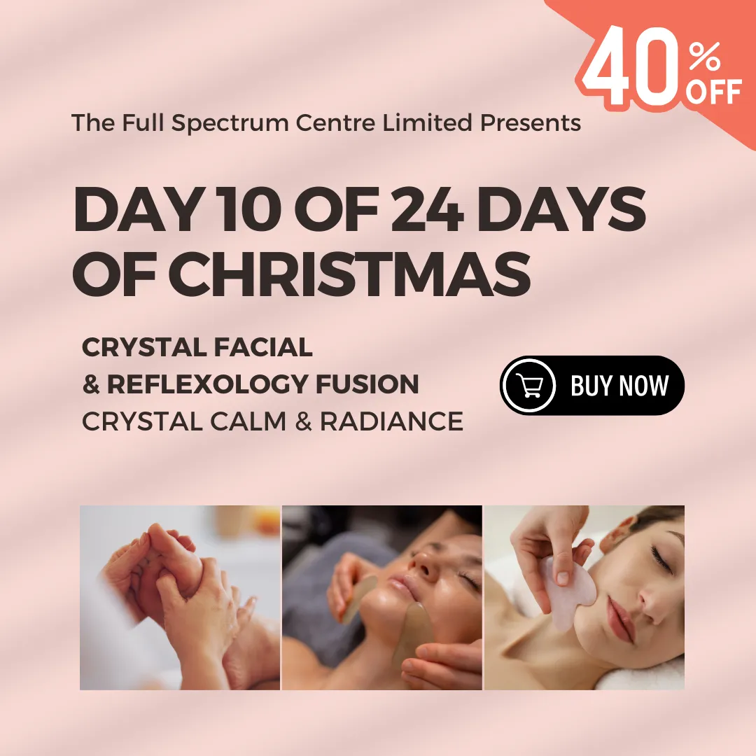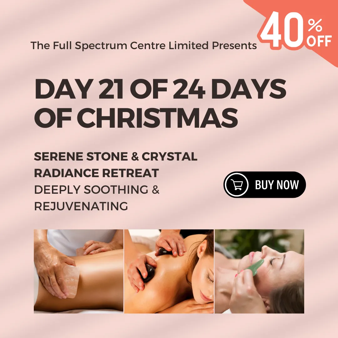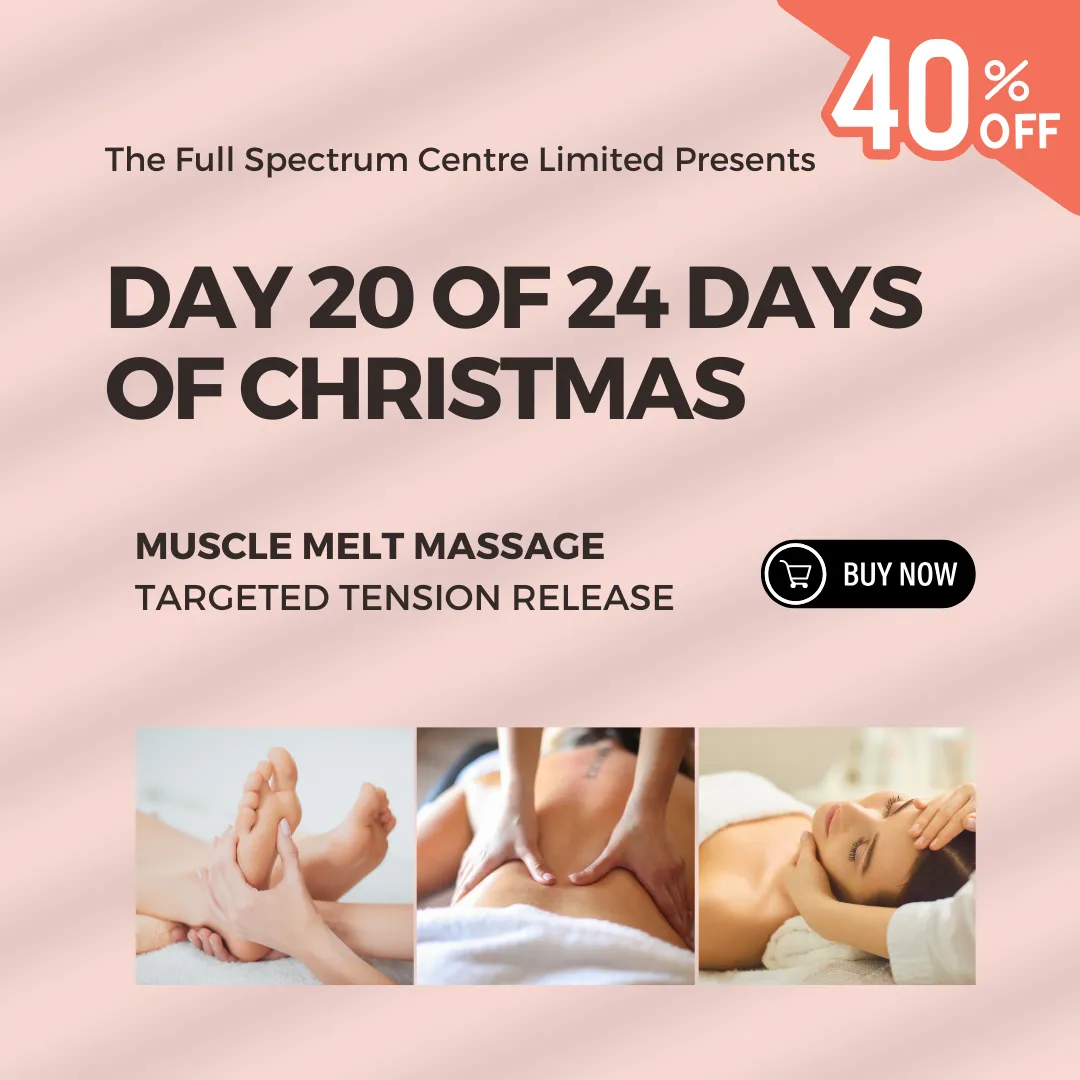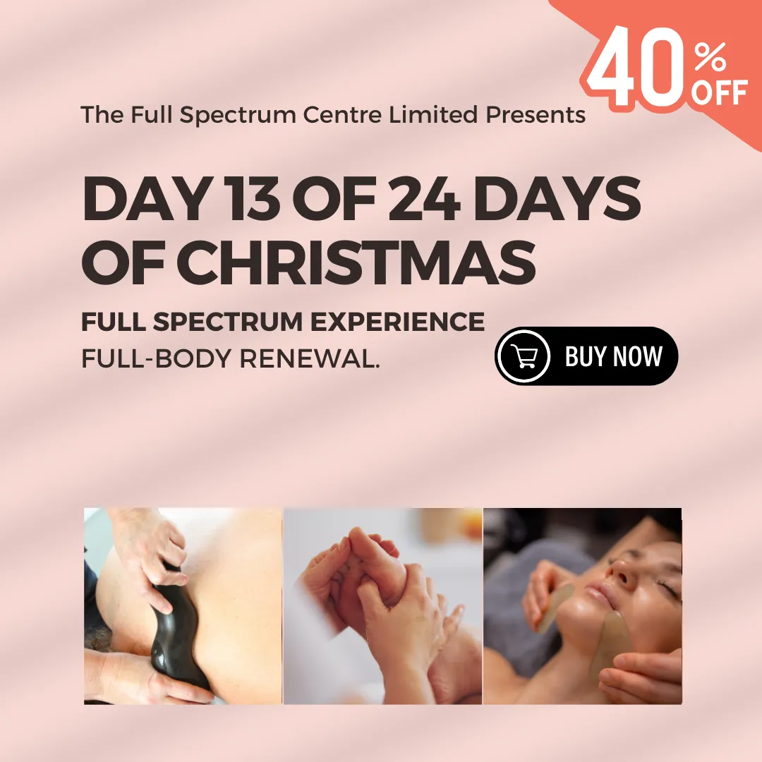 Welcome to The Full Spectrum Centre Limited's most magical event of the year – our '24 Days of Christmas' extravaganza! As the festive season approaches, we invite you to embark on a journey of self-care, rejuvenation, and holistic well-being like no other. Starting on the December 1st and running through to the 24th, our '24 Days of Christmas' event promises daily surprises and enchanting offers, specially crafted to nurture your body, mind, and spirit. Each day, a new and captivating package will be unveiled.